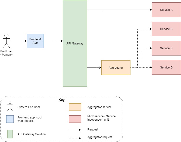 Sometimes, even though the API Gateway may provide Request Aggregation capabilities, it does not fit our application needs or expectations, hence some custom code is necessary to fulfill our requirements. Also, it might be required some level of flexibility that is not provided by those out of the box features in tools like API Gateways.
